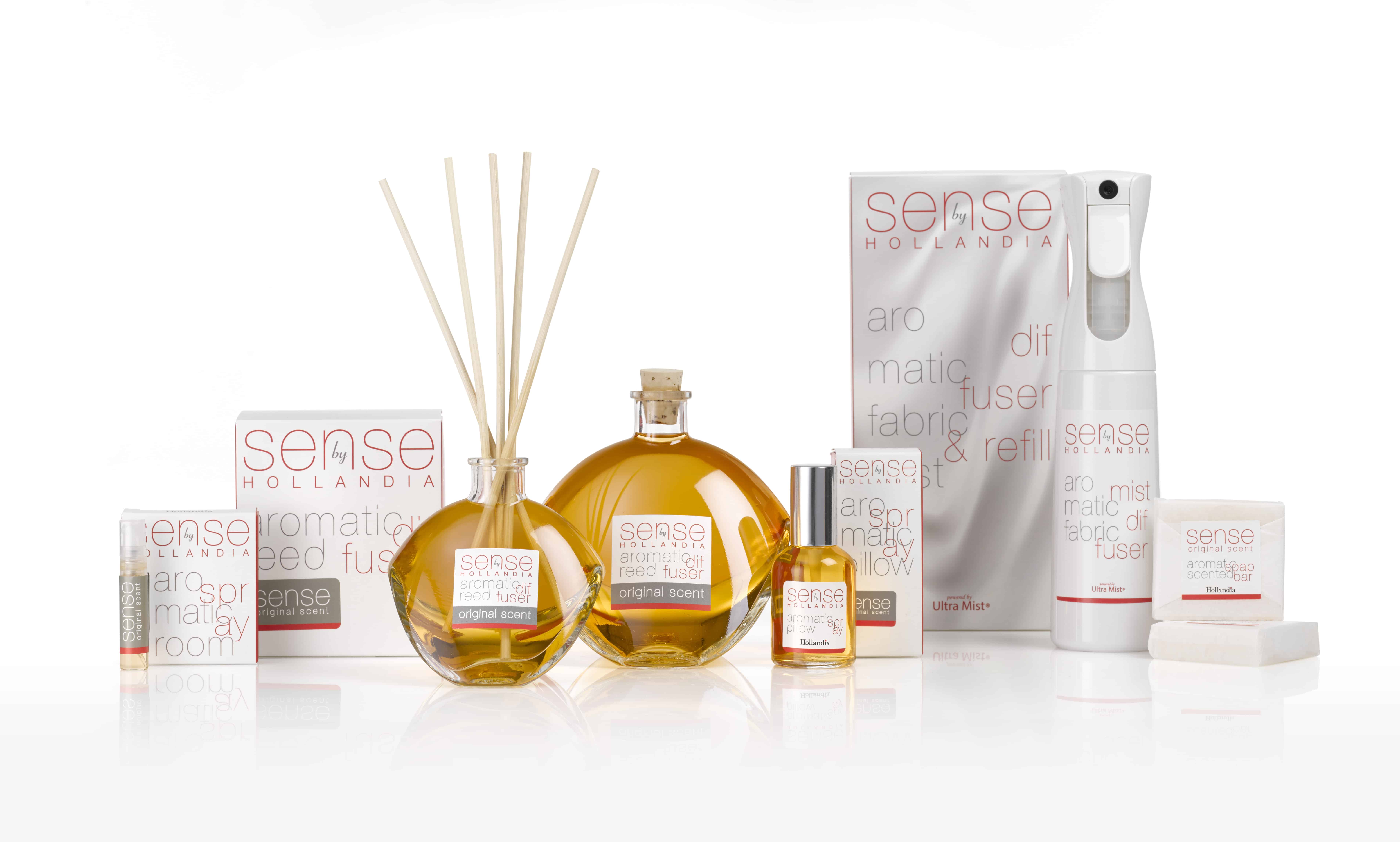 מגוון הניחוחות של  SENSE BY HOLLANDIA  מבוסס על תמציות שמנים אתריים טבעיים ומשובחים ומכיל אחוזי אלכוהול נמוכים וזאת על מנת להאריך את משך הניחוח בחלל: ניחוח עץ, פריחה, קטורת, אמבר, מושק ,ווניל ותבלינים; ניחוח פריחה המשלב פרחים עם ירוק ופירות מעל שכבת מושק ונגיעות עלים ירוקים ,חלבנה, חציר, קומרין  סיגליות ופריחת אירוסים; ניחוח רענן שמקורו בחלקים הצפון והצפון-מזרחיים של העולם, היכן שניחוחות עשירים לוכדים מאזינים בעזרת "צלילים" ריחניים. הניחוח הינו חווית הרחה המבוסס על קוקטייל הקאיפרינייה הברזילאי המתוק עם ארומת ליים ולגימת נשימה עמוקה של קליפת תפוז ירוק עטוף פריחת מגנוליה ופרחים טרופיים מתקתקים; ניחוח בהשראת האקלים הים תיכוני, והוא מבוסס על הניגוד בין האדמתיות של האזוב הגדל על עץ האלון לבין ניחוח המנדרין הירוק וכולל גם שרף חום עשיר שמקורו בשיח ורד הסלעים עם ניחוח שורשים ואדמה מה שהופך את הניחוח למסתורי ובעל מתיקות הדרים.