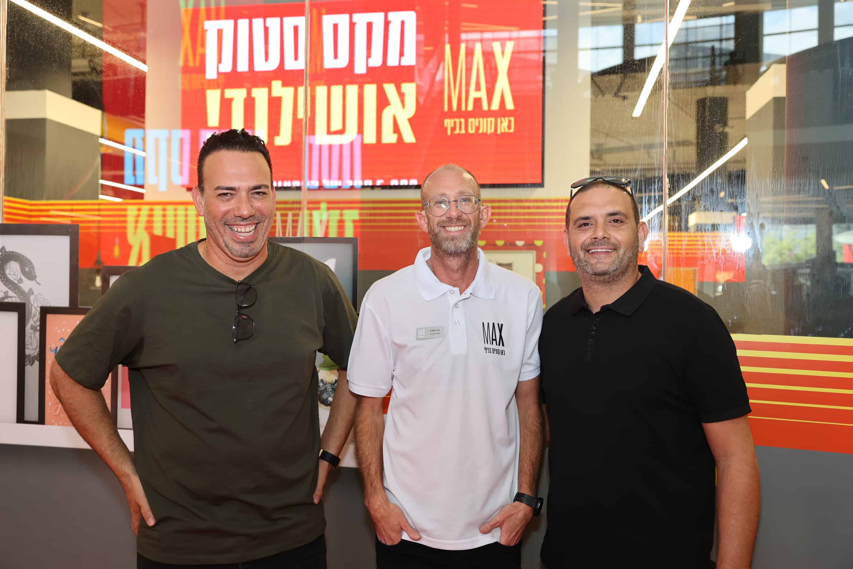 "מקס סטוק, ממשיכה במגמת הצמיחה וההתחדשות ופותחת סניף חדש במתחם אושילנד בכפר סבא, לראשונה בתוך קניון! הסניף החדש בנוי בשני מפלסים ומשתרע על שטח של 5,000 מ"ר. הגיעו להרים כוסית לכבוד הסניף החדש והשנה הבאה עלינו לטובה: אורי מקס מייסד ובעלים, שלמה כהן משנה למנכ"ל, אופיר אדרי מנהל הרשת, ארז שוורץ מנהל הסניף ועוד".