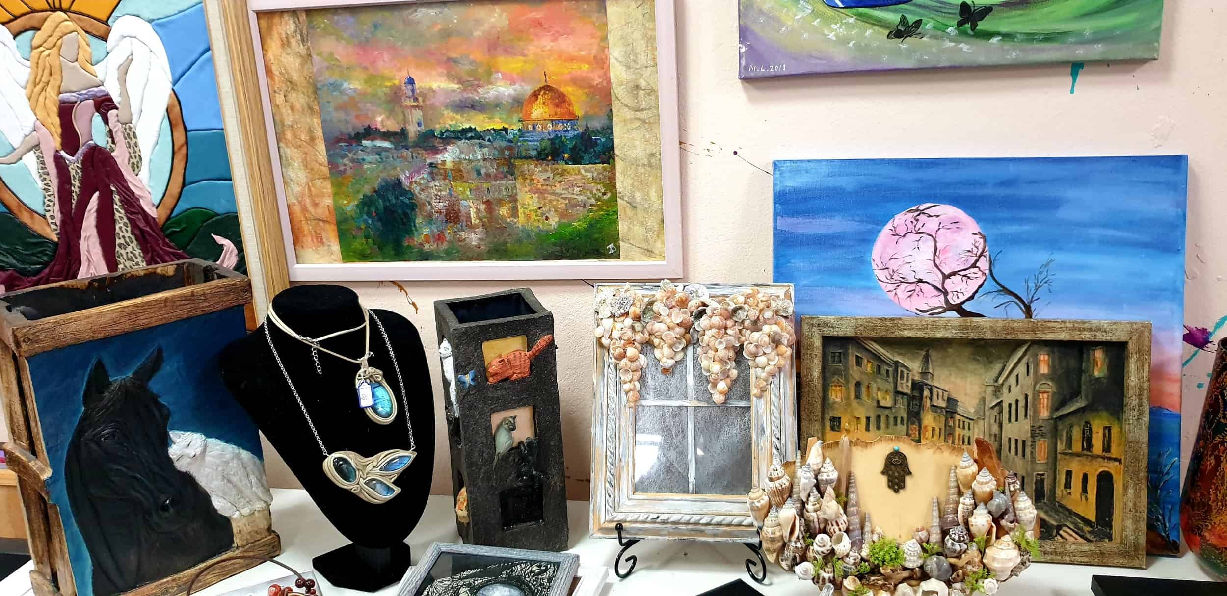 הגלריה תחשוף מגוון רחב של יצירות מטכניקות וחומרים שונים: יצירות נחושת, זכוכית, ציורי שמן מקוריים, יצירות צילום, רישום ואיור, פיסול בנייר וקרמיקה, תכשיטים, בובות וכלים שימושיים.