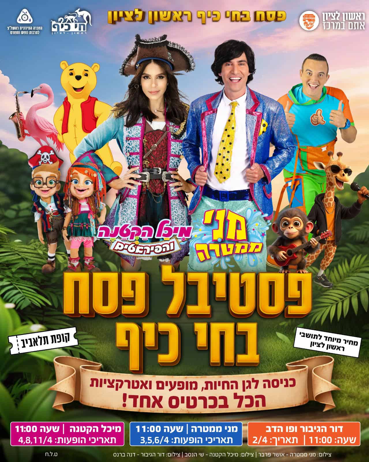 במהלך ימי חוה"מ פסח (3-9.4) ייהנו המבקרים ממופעי כוכבי הילדים האהובים בישראל בהם: מיכל הקטנה, מני ממטרה, דור הגיבור ופו הדוב, לצד מתחמי פעילות, מתנפחים, סדנאות יצירה ושלל אטרקציות נוספות. כל זאת בשילוב חוויה ייחודית של טיול בין בעלי החיים בפארק והכל בכרטיס אחד.