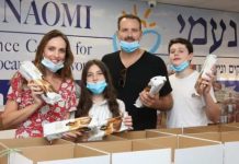 מלי לוי שמעון גרשון והילדים ביום התנדבות בחסדי נעמי למען ניצולי השואה הנזקקים